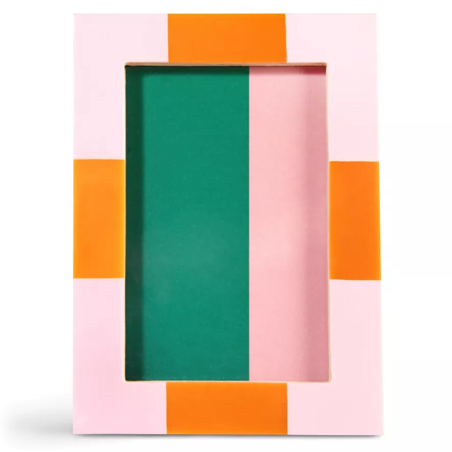 De Check fotolijst 18,5×13,5 van &klevering is meerkleurig; roze en oranje. De lijst heeft een lengte van 18,5 centimeter en een breedte van 13,5 centimeter. De fotolijst is gemaakt van MDF en polyresin. Je kunt het fotolijstje schoonmaken met een vochtige doek.