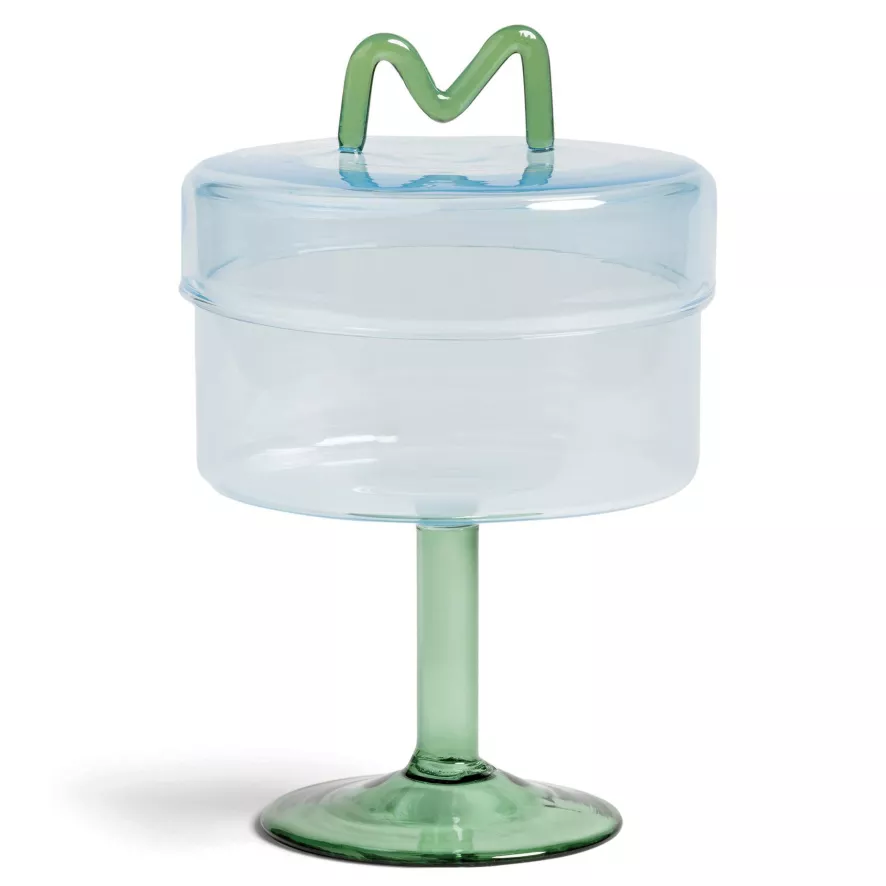 De Flow opberger van &Klevering heeft een diameter van 13 centimeter en een hoogte van 17 centimeter. De opberger is gemaakt van gekleurd glas en is schoon te maken met lauwwarm water. De Flow opberger is verkrijgbaar in verschillende kleuren.