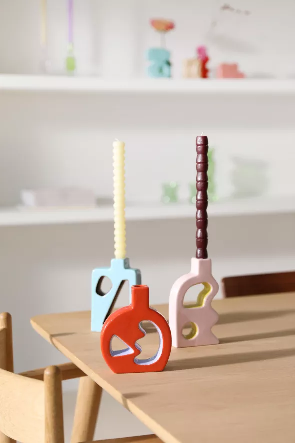 De Flush kandelaar rood van &klevering heeft een lengte van 12,5 centimeter, een breedte van 3,5 centimeter en een hoogte van 15,5 centimeter. De kandelaar is gemaakt van aardewerk en weegt 0,34 kilo. &klevering raadt aan de kandelaar te reinigen met een vochtige doek.