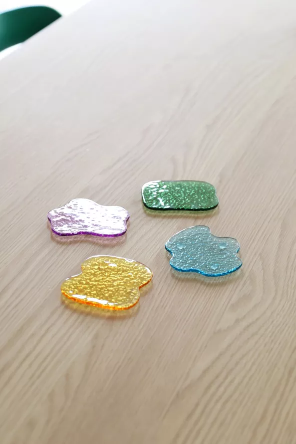 De Puddle onderzetters set van 4 van &klevering bestaat uit een set van 4 onderzetters. De eerste onderzetter heeft een breedte van 12,5 centimeter en een lengte van 11 centimeter. De tweede onderzetter heeft een breedte van 13 centimeter en een lengte van 11 centimeter. De derde onderzetter heeft een breedte van 12,5 centimeter en een lengte van 12 centimeter. De vierde onderzetter heeft een breedte van 12,5 centimeter en een lengte van 9,5 centimeter. De onderzetters hebben allemaal een hoogte van 1 centimeter. &klevering raadt aan de onderzetters te reinigen met een vochtige doek.