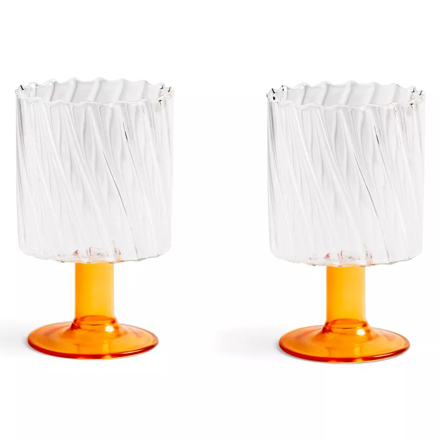 De Twirl wijnglazen set van 2 van &Klevering hebben een diameter van 7,5 centimeter, een hoogte van 13 centimeter en een inhoud van 0,25 liter. De glazen zijn gemaakt van glas. De Twirl champagneglazen set is verkrijgbaar in verschillende kleuren. De glazen zijn niet geschikt voor de vaatwasser.