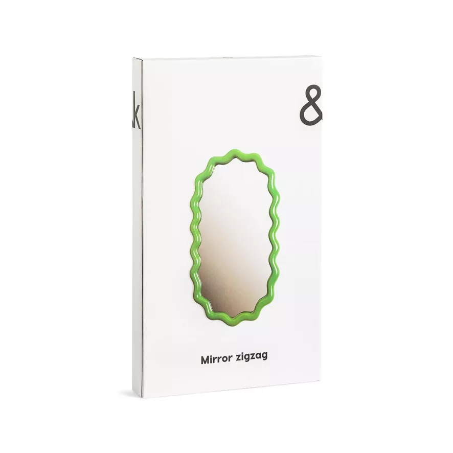 De Zigzag spiegel 50×28 van &klevering heeft een lengte van 50 centimeter, een breedte van 28 centimeter en een dikte van 2 centimeter. De spiegel is gemaakt van glas en de lijst is gemaakt van polyresin in een groene kleur. Maak de spiegel schoon met een vochtige doek.