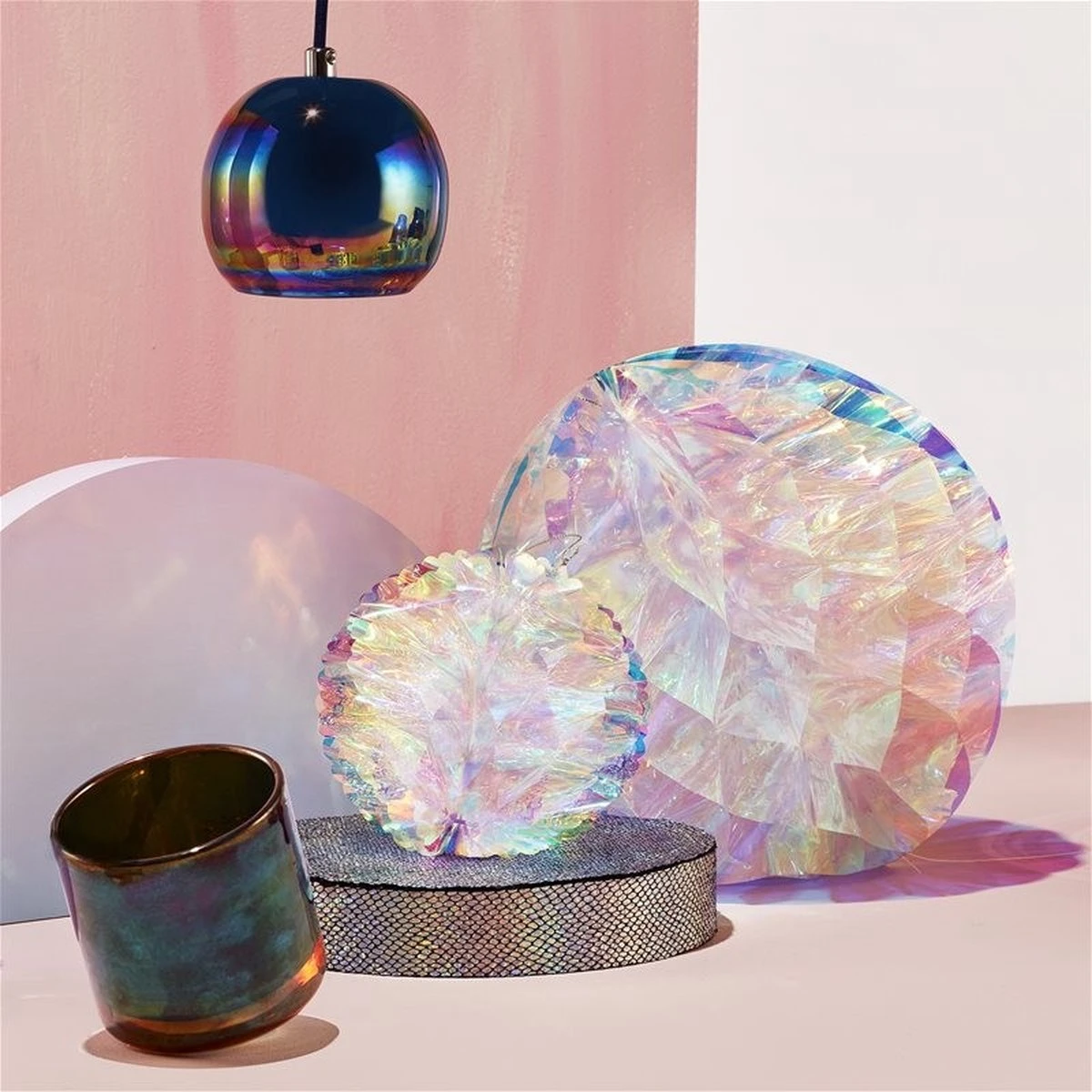 Een glimmende theelichthouder met blauwe en paarse toets. Het ideale accentje in jouw interieur of als cadeautje.